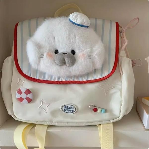 Original children's fun nylon backpack with large capacity, school bag for cute Japanese-style small animals, student backpack Images |
